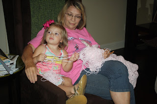 That next week Corey was out of town for an entire week so Gigi came to town to help me with Elle. Here she is crocheting with Gigi :)